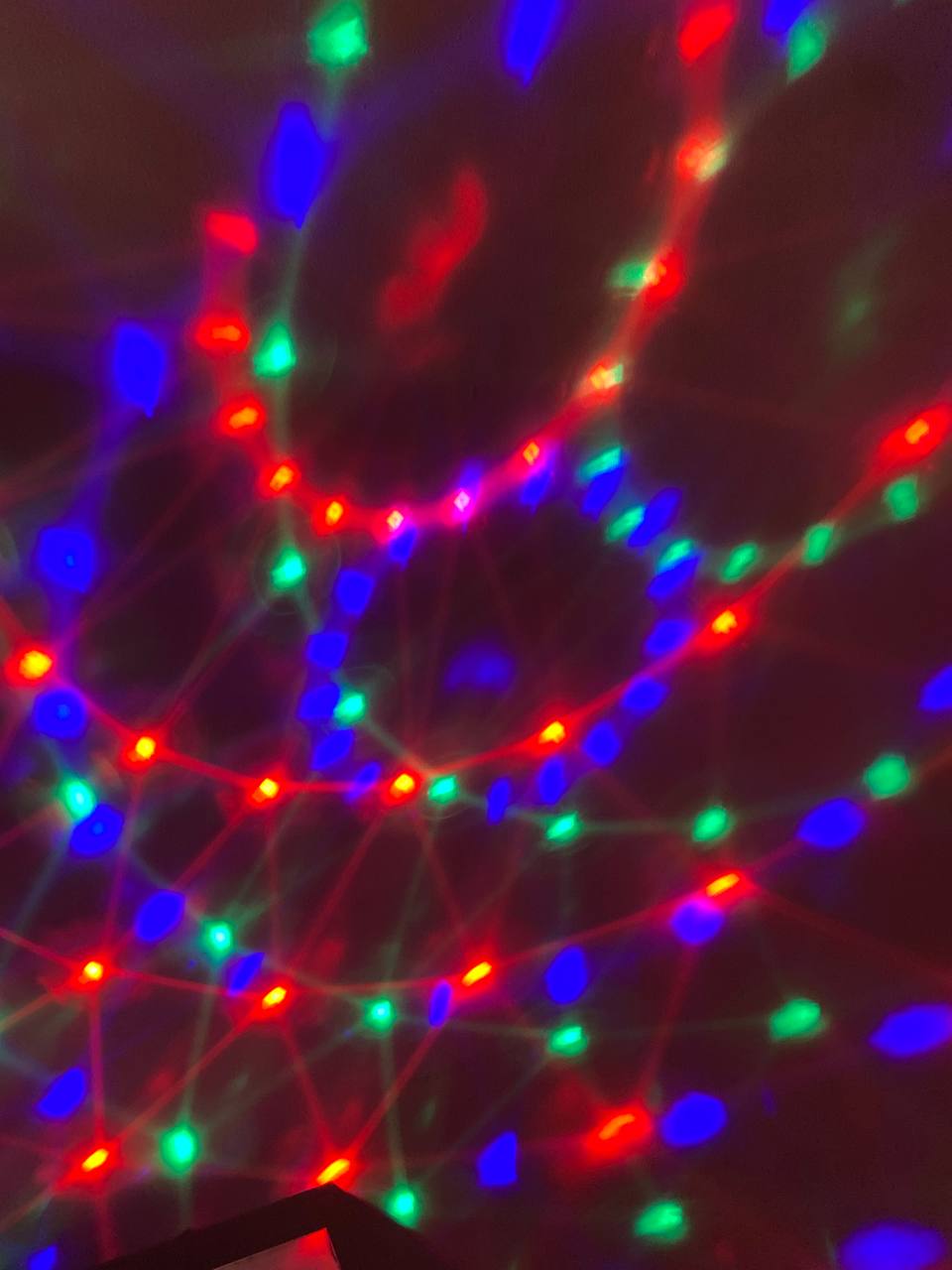كرة إضاءة دوارة ملونة RGB، مثالية لأجواء الحفلات والمناسبات.